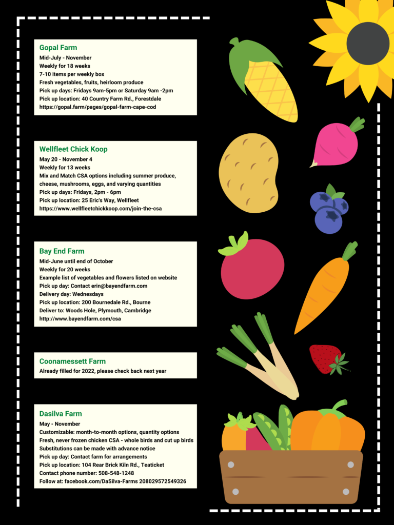 Find a printed copy at our office (1358 Bridge St. (Route 28), South Yarmouth), or at your local farmers market, farm stand, library, or community center.